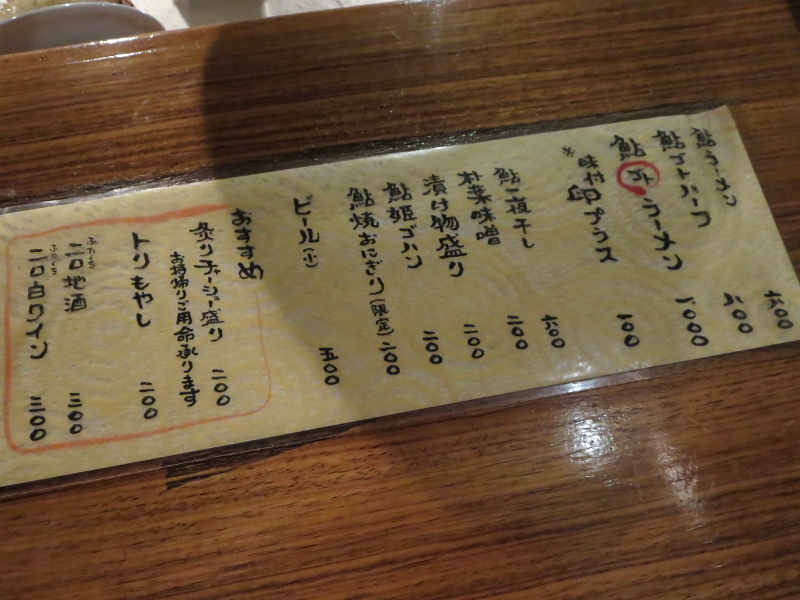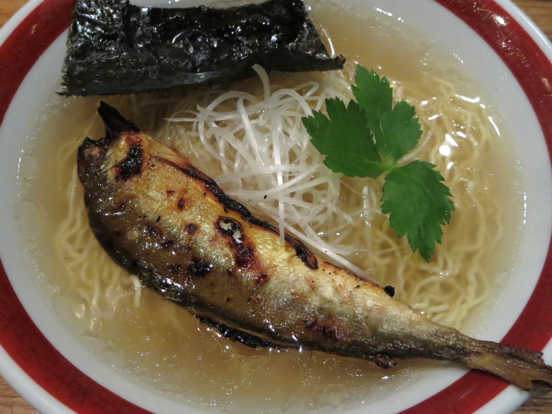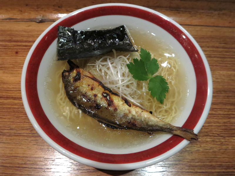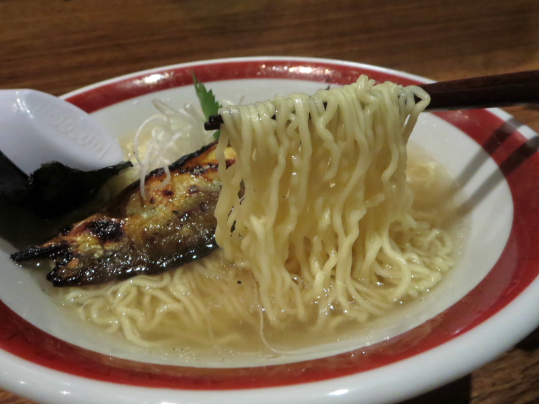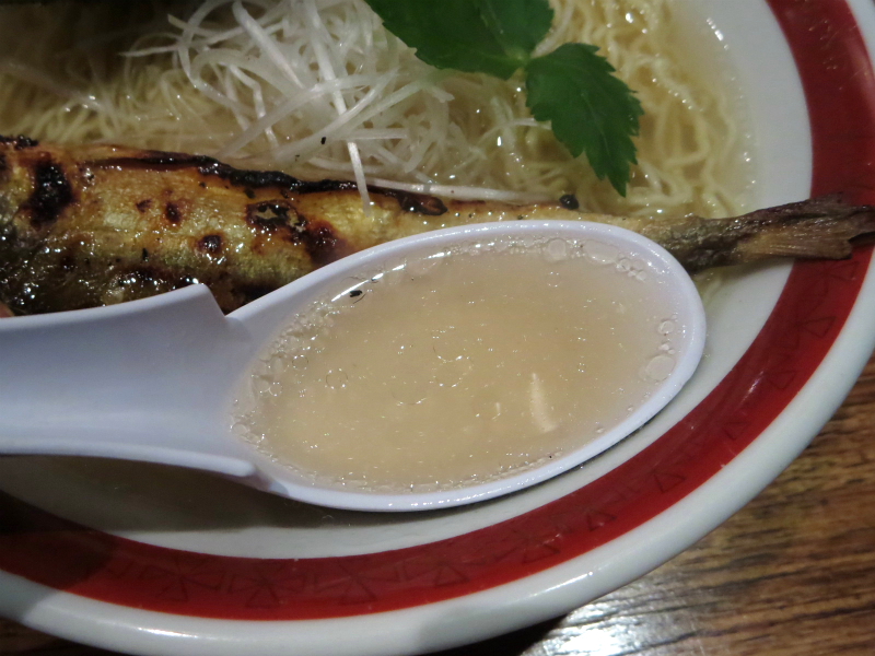 さて、2時間程あーだこーだしたら流石に腹も減り、チャリで予定通りの「鮎ゴトハーフ」。水質のキレイな河川が鮎の香りを上げるとされるように、水質のキレイなスープでは鮎が驚くほどに薫りますゼ。最も、鮎を齧って啜ればそうなるだろ。