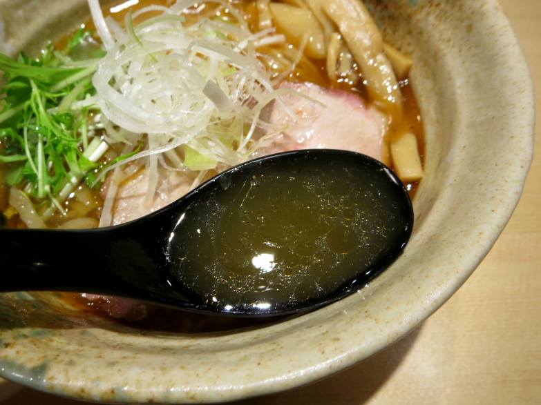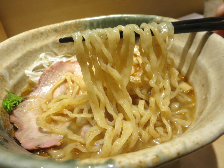 注文は「焼きあご塩らー麺」。甘味に富むスープ、ほろ苦い香味油、不揃いな麺は菅野製麺って結局同じ穴の狢だった。