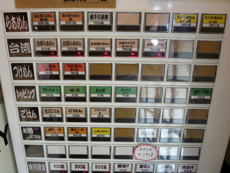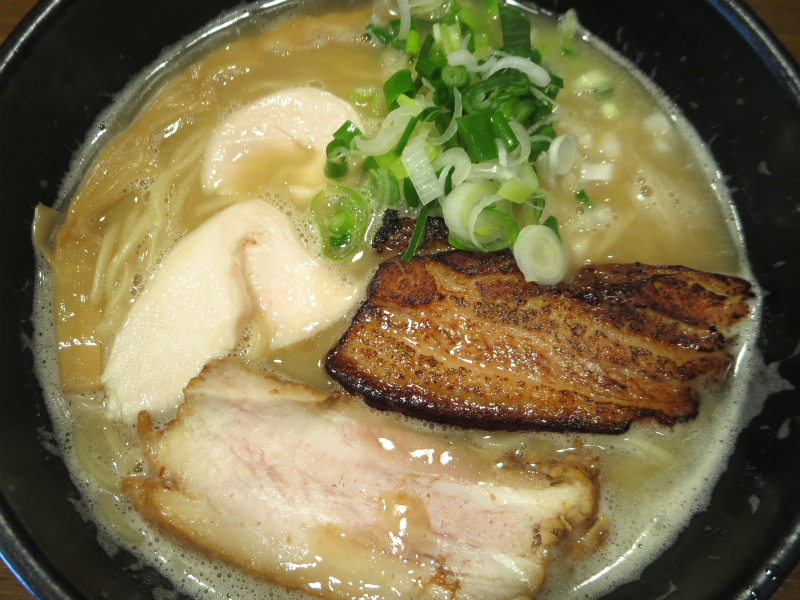 さて、季節柄「冷やニボ」なんて限定メニューもあったけど、左上の「鶏白湯らあめん 醤油」。肉増しに見紛うくらいの肉。
