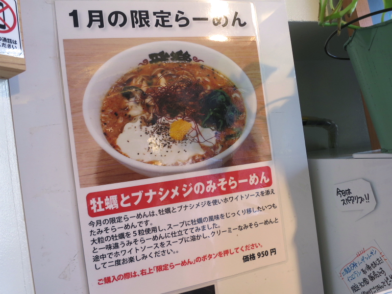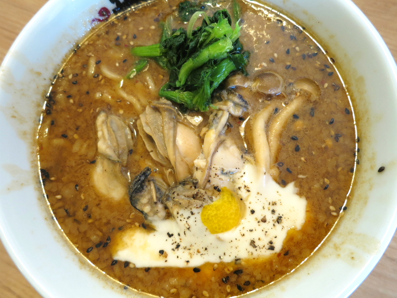 そんな安心な食材で年初め、そんな安心な一杯でラーメン初め。さて、1月の限定「牡蠣とブナシメジのみそらーめん」。