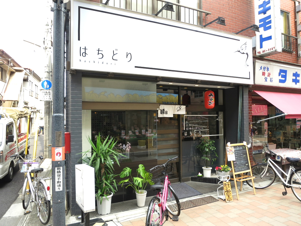 最寄駅は板橋区役所前駅。旧中山道の不動通り商店街に佇むのが、名店を渡り歩いたという店主の「麺屋 はちどり」。