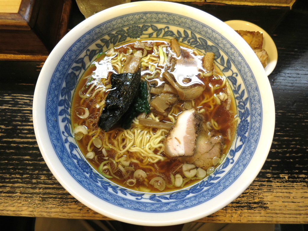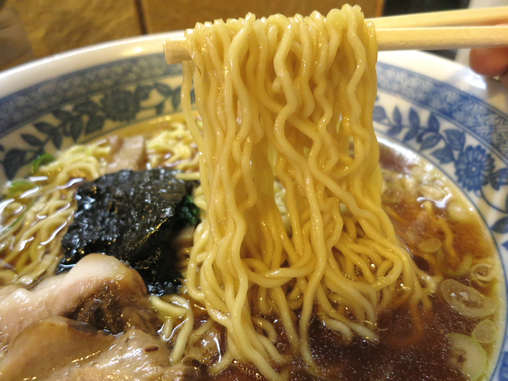 さて、「支那そば」。店一杯の常連に交じって啜る一見にも声を掛けてくれる、目配り気配り心配りもその昔から味のうち。