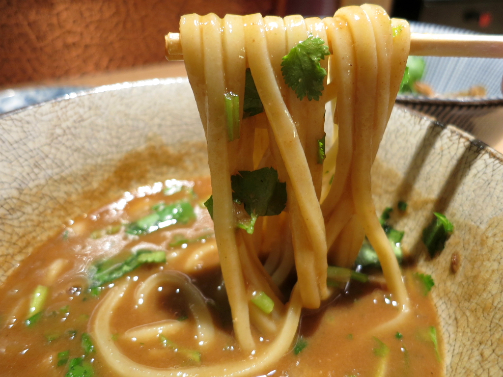 さて、「ラム豚骨つけめん」。クミンシード、レモン、パクチーなど、最COREなこの組み合わせに足踏み鳴らせ。武器はダメ。