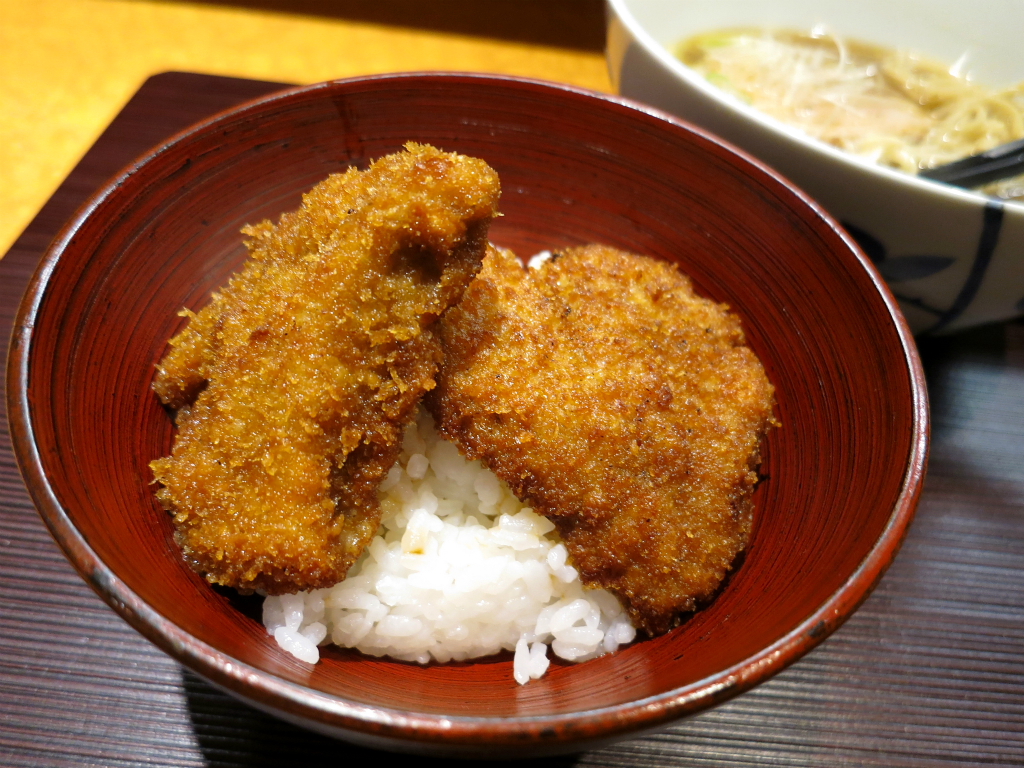 ■注文:醤油(細麺)(¥750)、自家製ソースのカツ丼(¥350)
