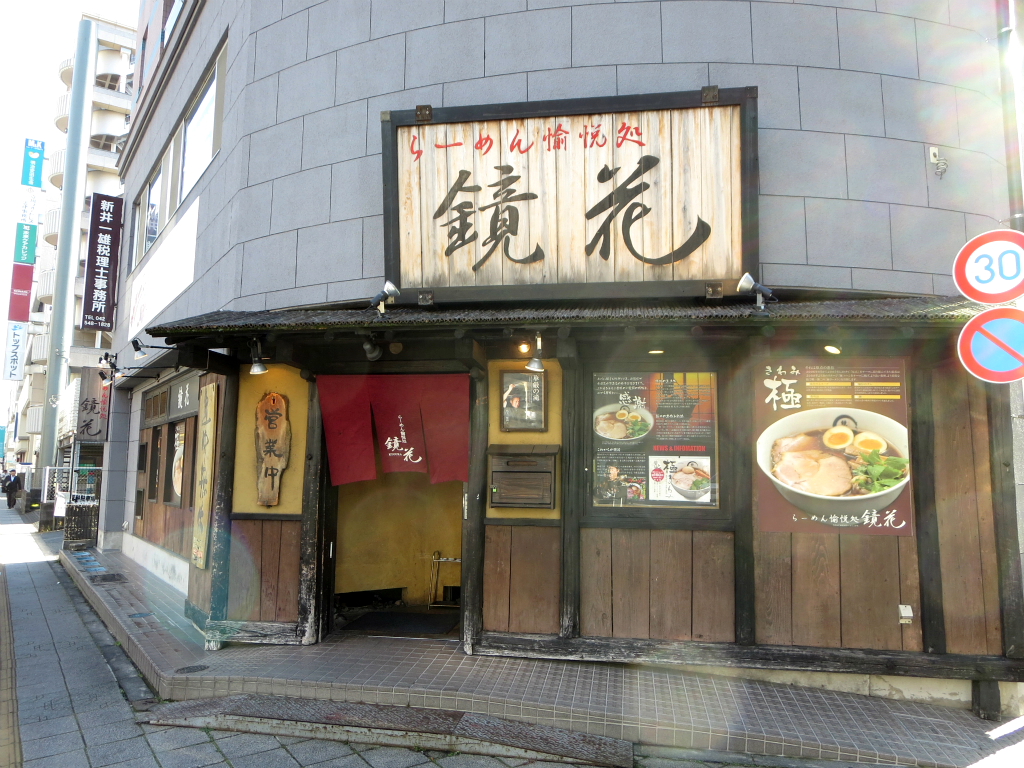 最寄りは立川駅。多摩地区をレペゼンする創作麺料理の人気店、創業は2000年(平成12年)、「らーめん愉悦処 鏡花」。
