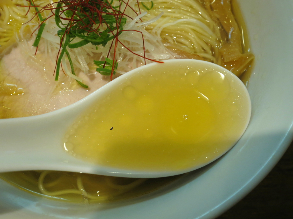 さて、「塩ラーメン」。師匠筋スタイルを踏襲というか何というか、鶏と水だけ、混じりっけなし、賞賛の諸手を挙げっぱなし。