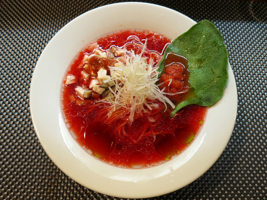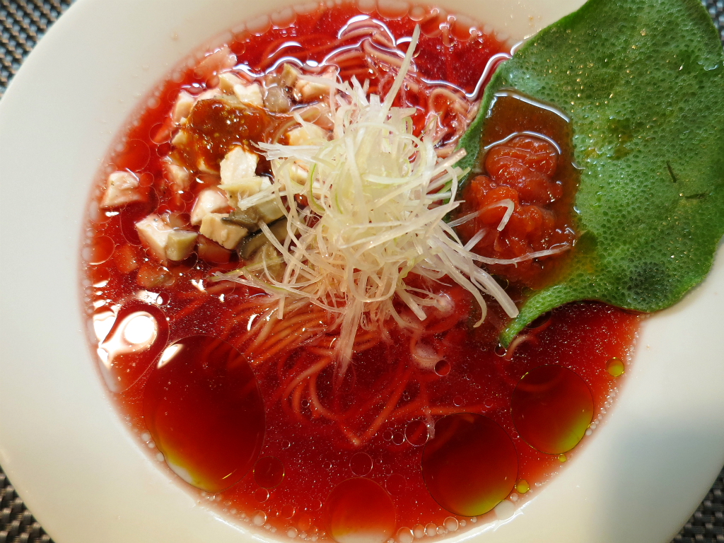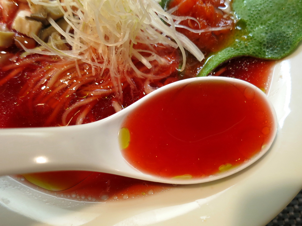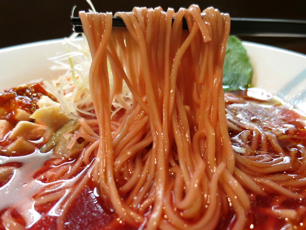 さて、「レッドスーパーフードラーメン」。情熱の真っ赤な薔薇を彷彿させる、シャア専用的な深紅の杯が業界のジンクス。