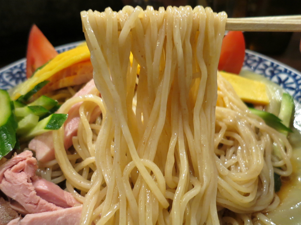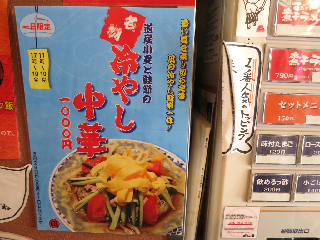 さて、「道産小麦と鮭節の冷やし中華」。日を前後すること数日前、下北沢店にもヒヤチューの文字があったが同じかしら。