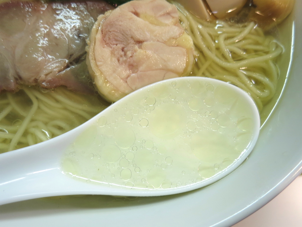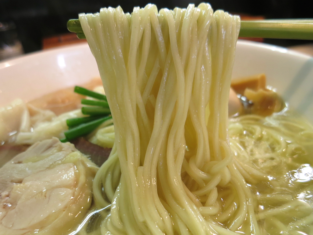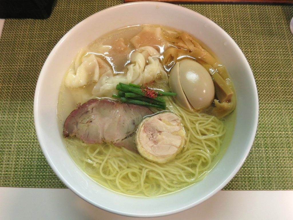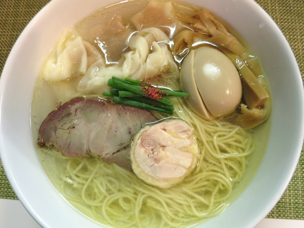 さて、「塩ワンタン麺」。汁なし担担麺は完売ですって、そりゃ大人気だもんね。でも肌理細やかな塩の存在を侮るなかれ。