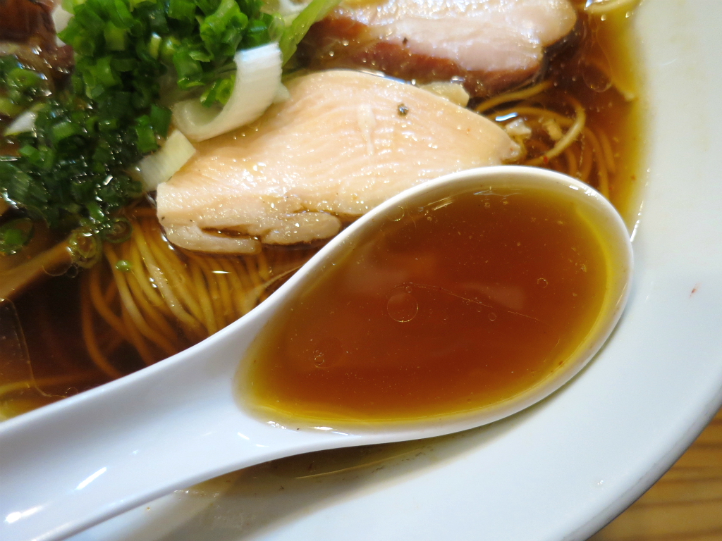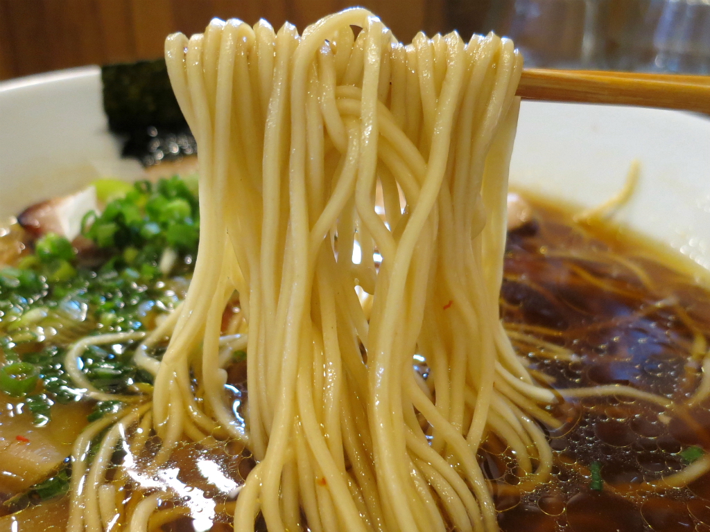 さて、「しもふり中華そば」。限定の「牡蠣塩」(だったかしら) に舌鼓を打つ馴染客の横で、細麺変更のデフォルトメニュー。