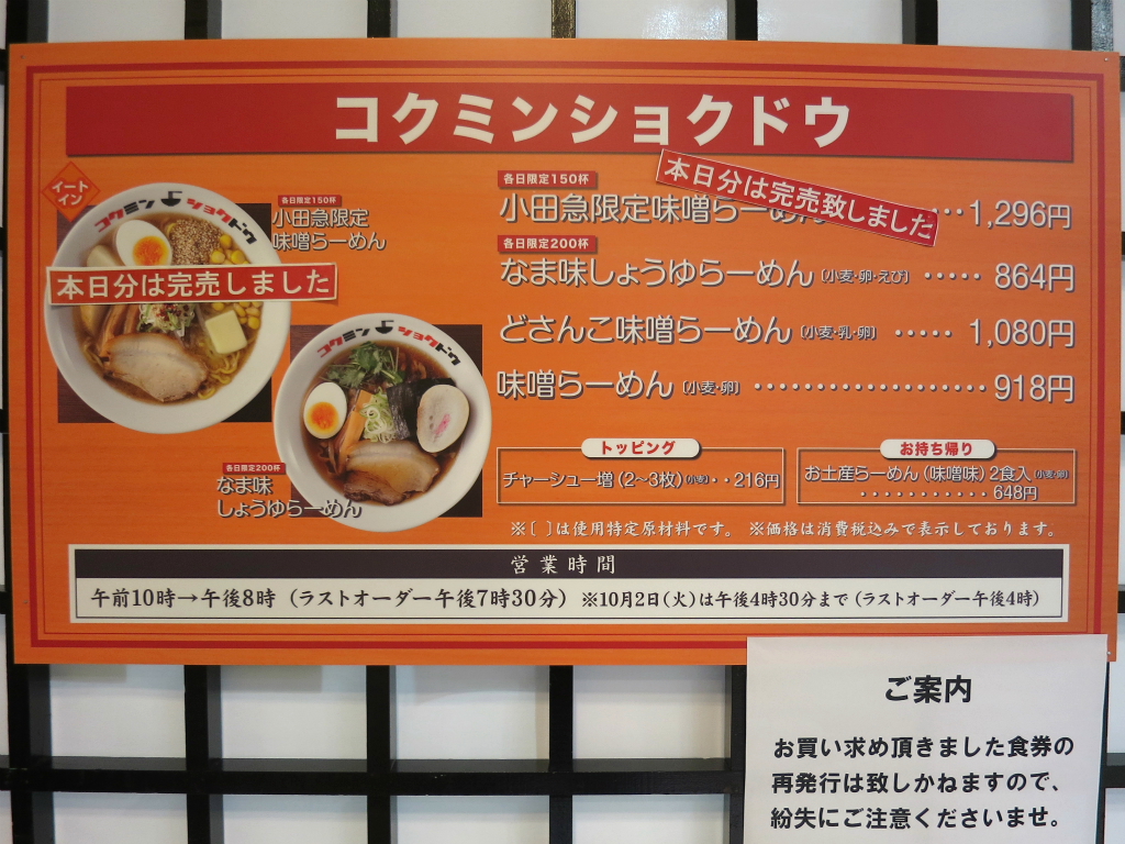 札幌のラーメン店主が選ぶ美味しいラーメン店という、国民食堂改め「コクミンショクドウ」が小田急新宿店催事に出店。