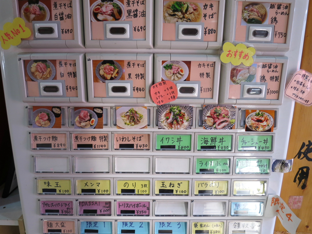 Kotobuki Seimen Oyster Noodleって書かれたシャレオツな丼が見たくて、というのは冗談で、催事のモノホンバージョンを食べたくて牡蠣の釦を押してみた君と僕。うん、そんな不純な動機、シーンに対するリスペクトなど放棄しちゃアレですゼ。