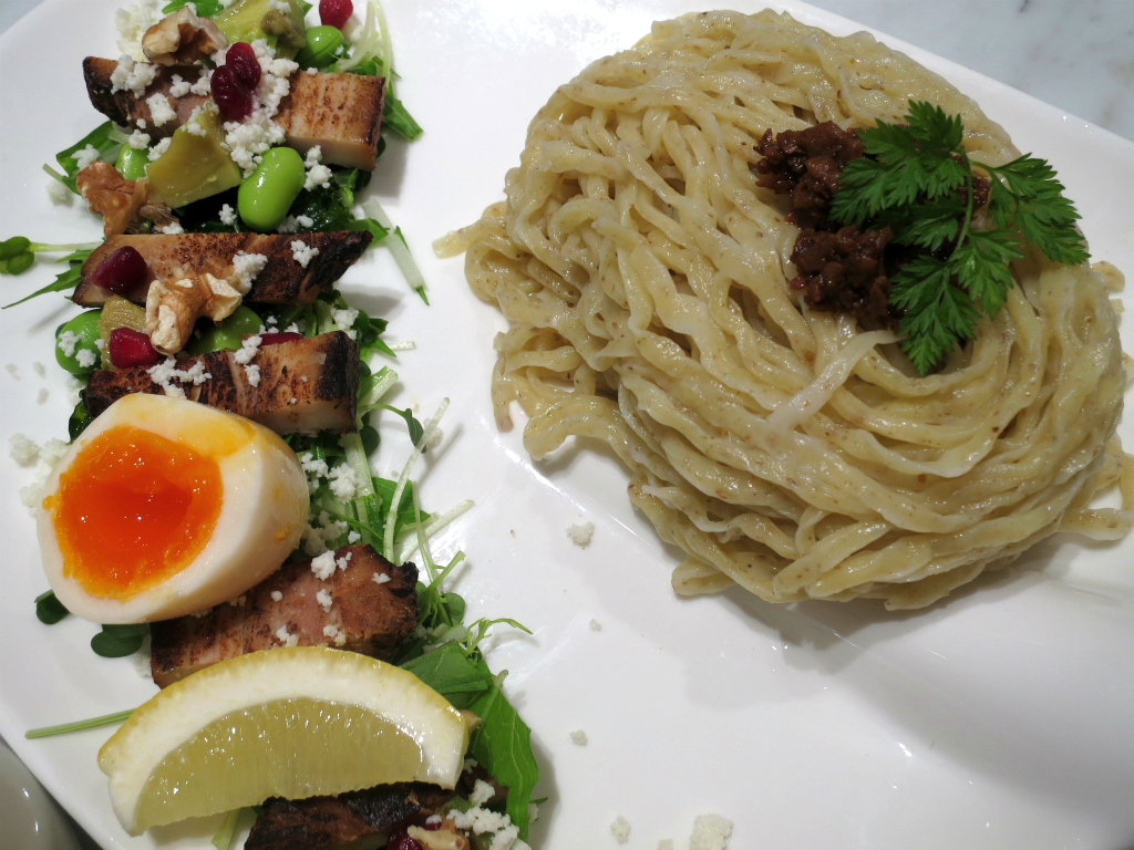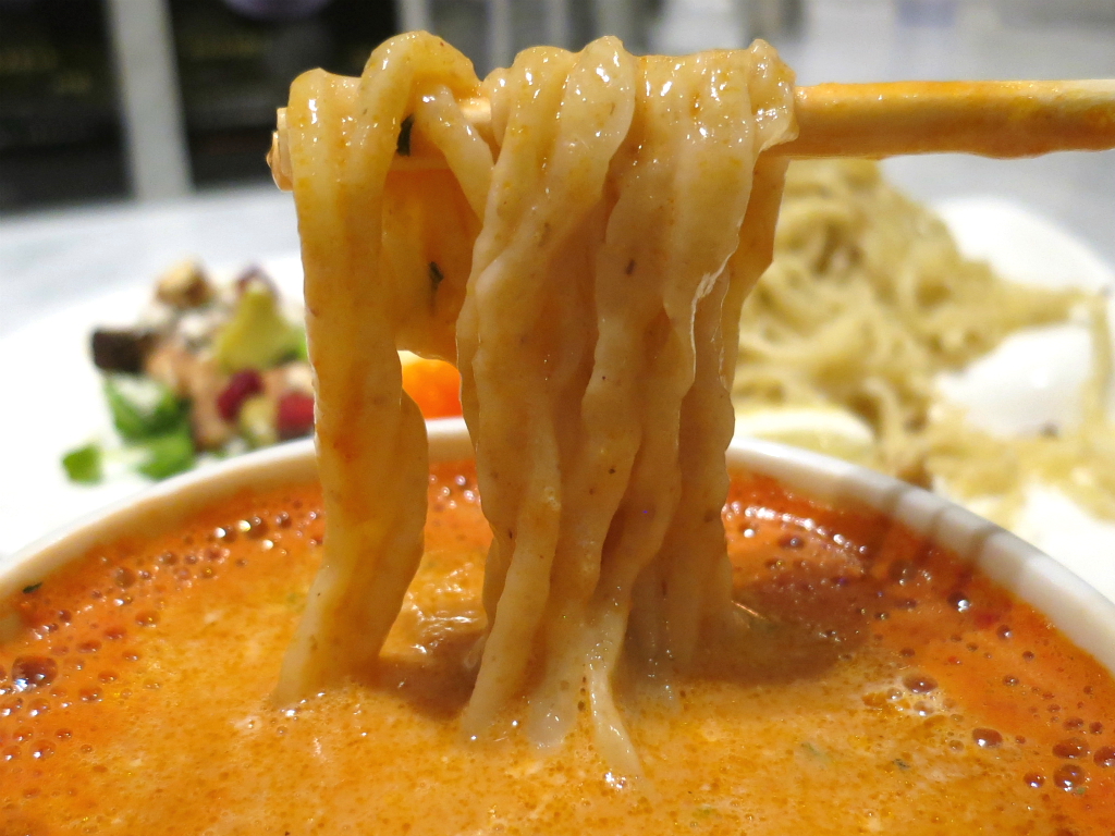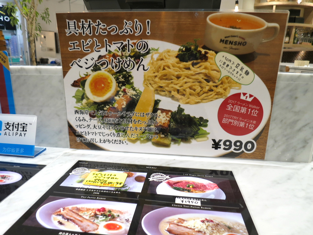新宿ミロードの客層を踏まえているんだろうと思うけど、若年層の男女を意識したメニューが多くみられるダンジョンを抜けて参上する君と僕。うん、この年齢になってくるとなかなかアレかも知れないが、食べたい麺があるから仕方ないですゼ。