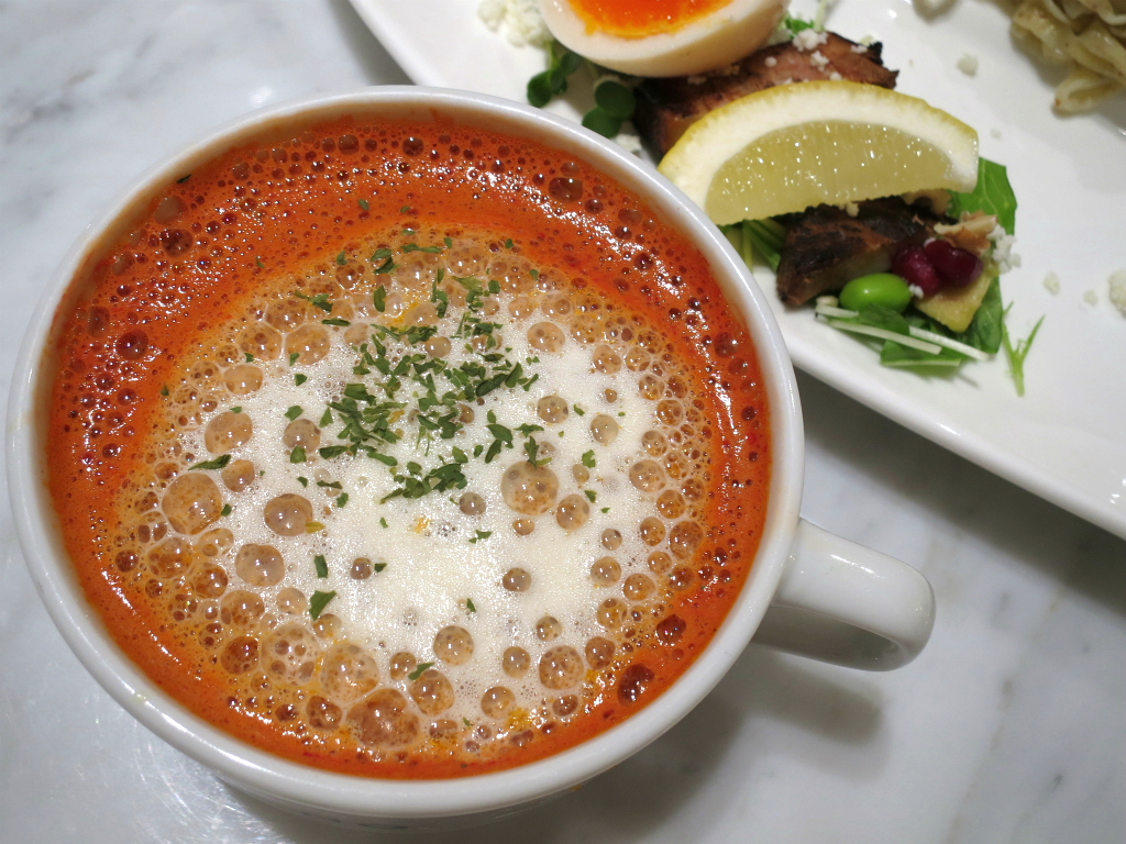 さて、「具材たっぷり!エビとトマトのベジつけめん」。シャレオツに食べようと思ったのも束の間、最後飯割りしちゃった人。