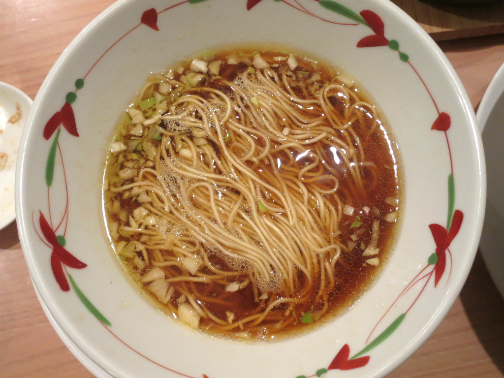 さて、「醤油らーめん(かけ)」。これだけ食べたら かけスタイルが嬉しい。そんな中締め的な一杯の後、二次会は一階で。