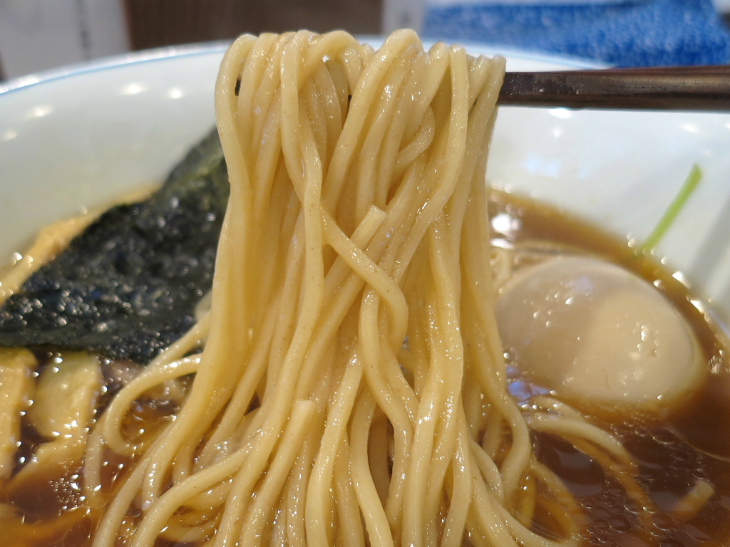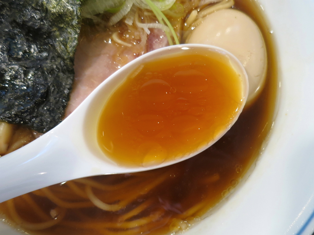さて、「醤油らぁ麺」。非の打ち所が無いくらいに好印象な一杯だけど、強いて言えと詰められたから 玉に瑕を言っておく。