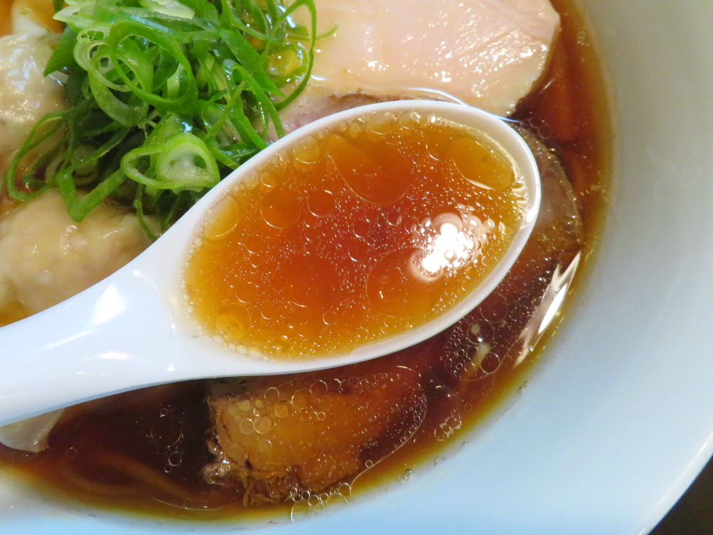さて、「醤油らぁ麺」。時間的に腹が減りまくっていたから「醤油ワンタンらぁ麺」と思ったが、2個ってのが丁度良いんだな。