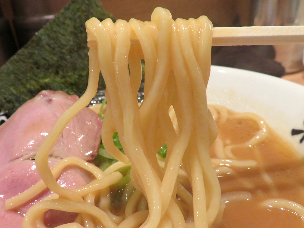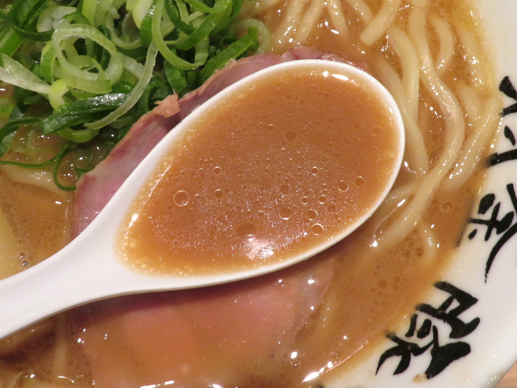 さて、「らぁ麺(並)」。羽釜豚骨というと先日食べ歩いてきたSAGAの一杯を脳裏に浮かべるが、それはそれ、これはこれ。