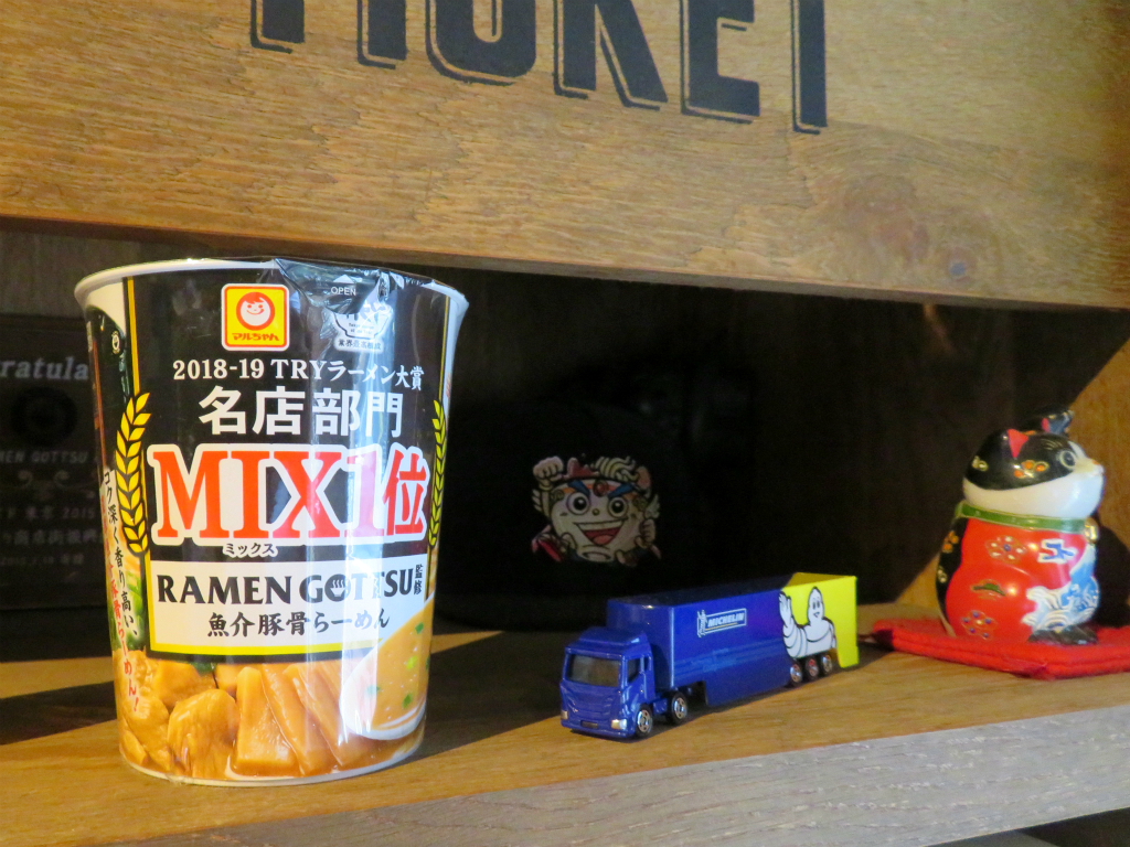 さて、「らーめん」。そうそう、ゴッツのカップラーメンも出ていたね。食べるのも良いけど、飾るのが良いよね とは店主の弁。