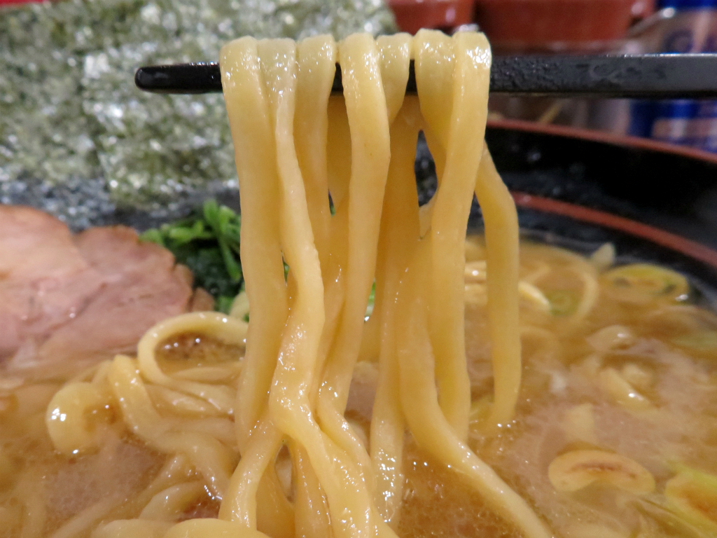 さて、「ラーメン 並」。個人的なルール。家系と呼ばれる一杯の好みはやわめ、後は普通でいつも通り啜る。ネギ集める。