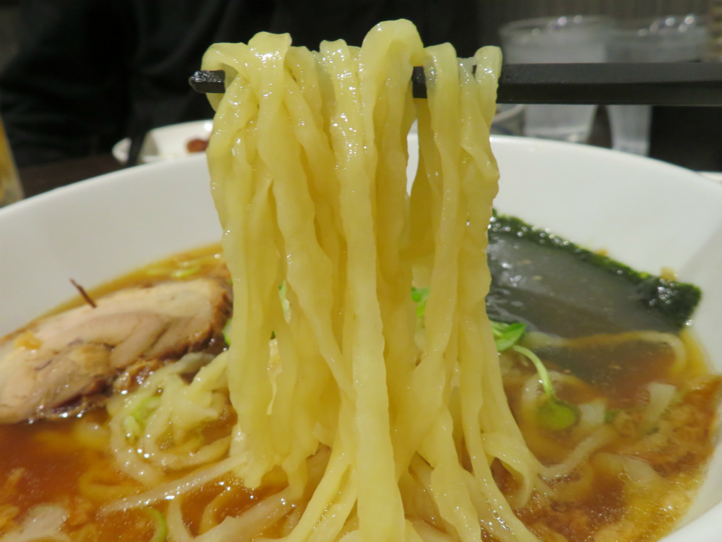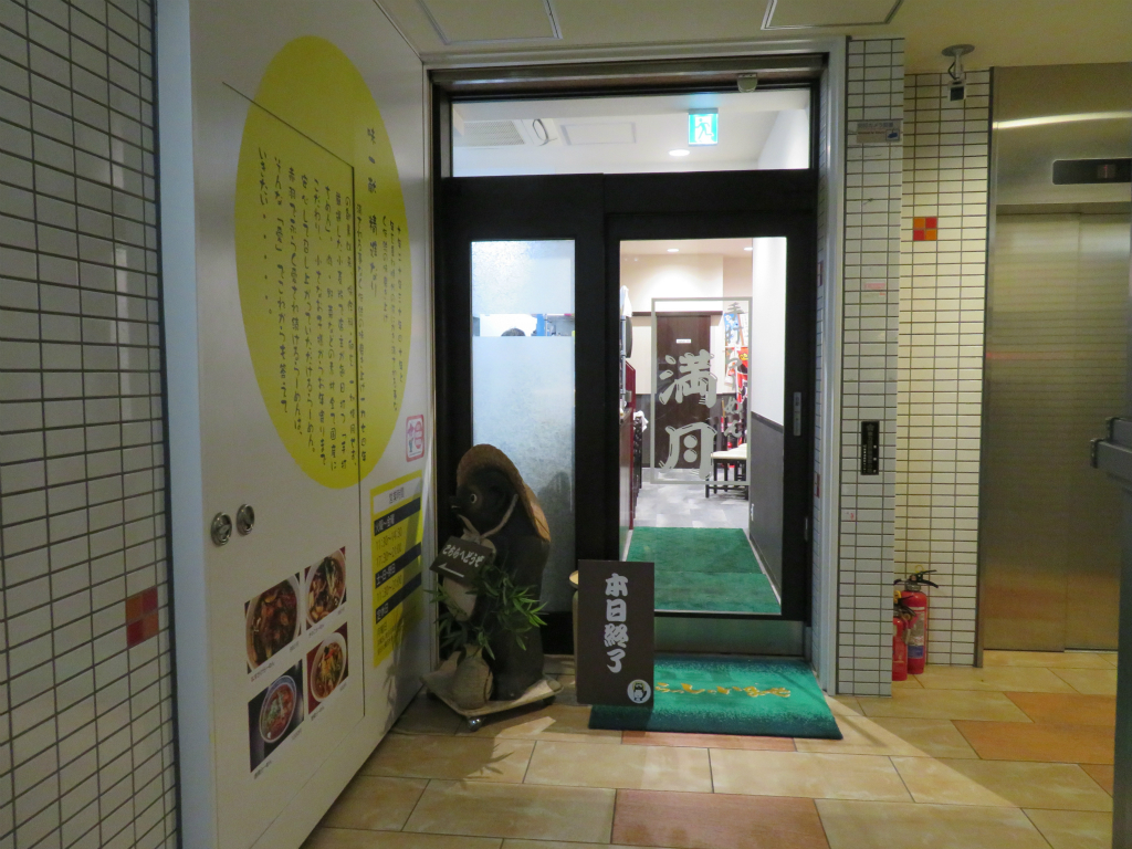 最寄は埼京線の 赤羽駅。創業1974年(昭和49年)、孟宗竹で打った手打ち麺が売りの人気店。「手打らーめん 満月」。