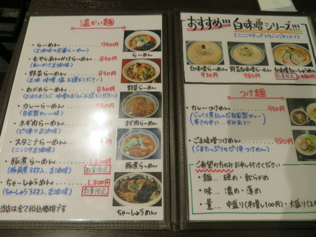 さて、「らーめん」。味の総合商社みたいなラインナップから 選ぶは基本のキ。あ、ざるは味噌だれにしておきますかって。