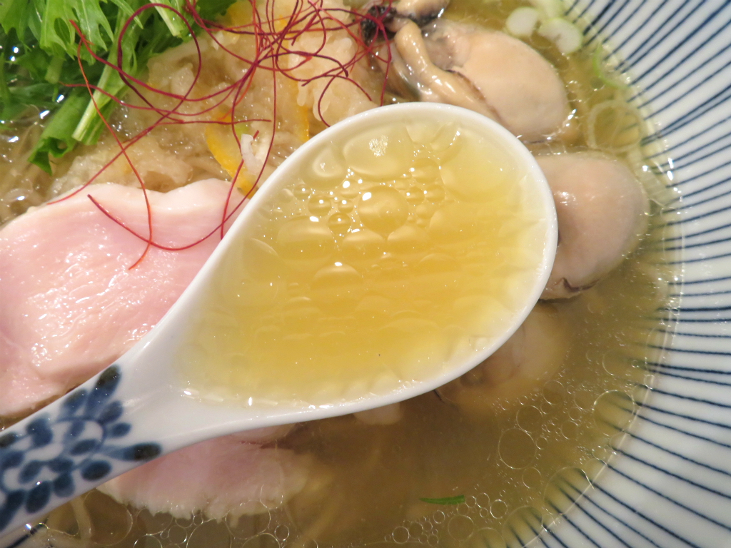さて、「牡蠣そば」。雪平鍋の中、ライブ・オン・ダイレクトで付与されオイスター。五臓と六腑に沁み入る、宛らモイスチャー。