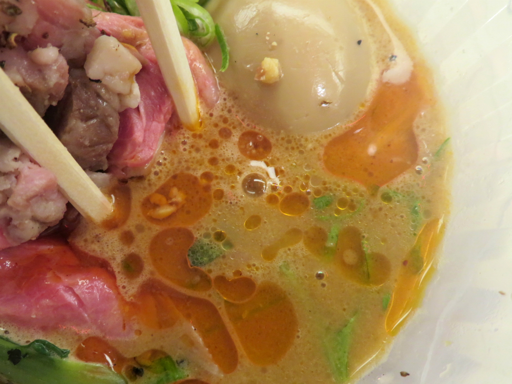 さて、「牛とろ和牛担々麺」。およそ20年前、自分が渋谷で遊んでいた頃にこんなんがあったら毎日の食事になったかもね。