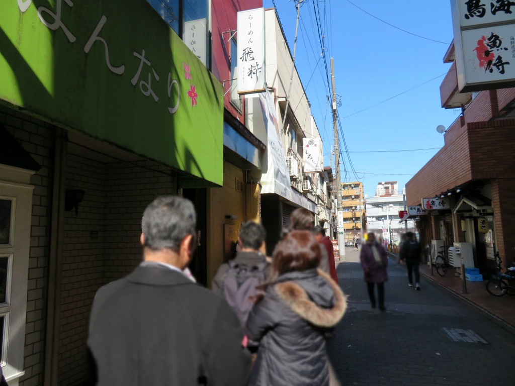 蒲田駅東口から呑川方面へ行く途中、目に飛び込む行列。家系じゃなくて家系風の人気店 「らーめん 飛粋(ひいき)」。