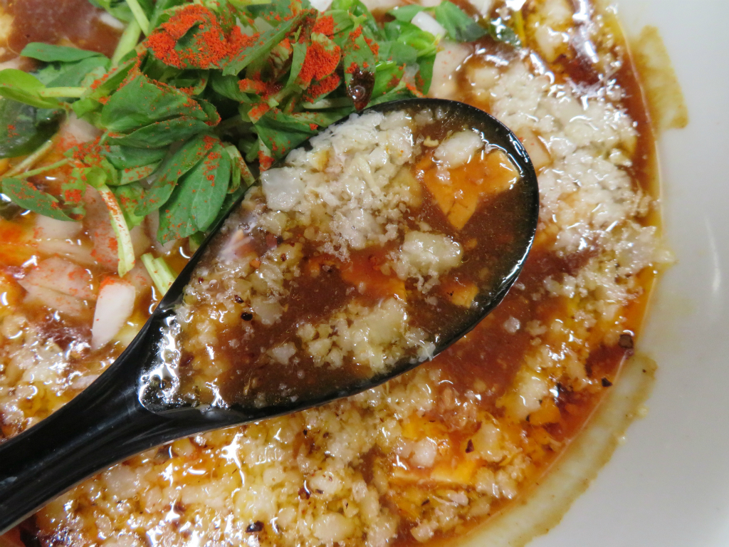 さて、「背脂咖哩麻婆麺」。写真撮るかい、と唆された「背脂煮干し中華そば」も一応食べてますから。タフでラフですから。