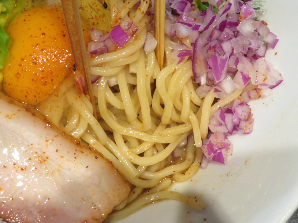 創業2014年(平成26年)、ANTITHESIS FROM LOCALを掲げる人気店。店主 礒田祐樹氏による「アンタイNOODLES」。