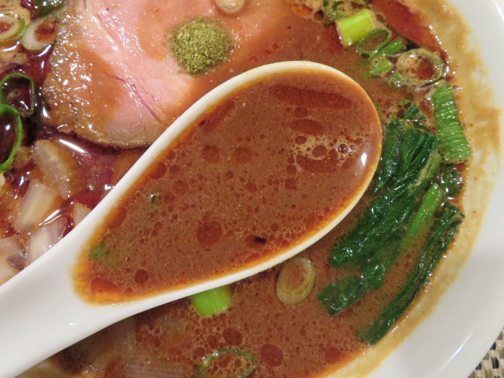 さて、「辛い味噌らぁめん」。店の売りである「焦がし煮干」を抑えて、心のベストテン第一位はこんな辛味噌かもしんまい。