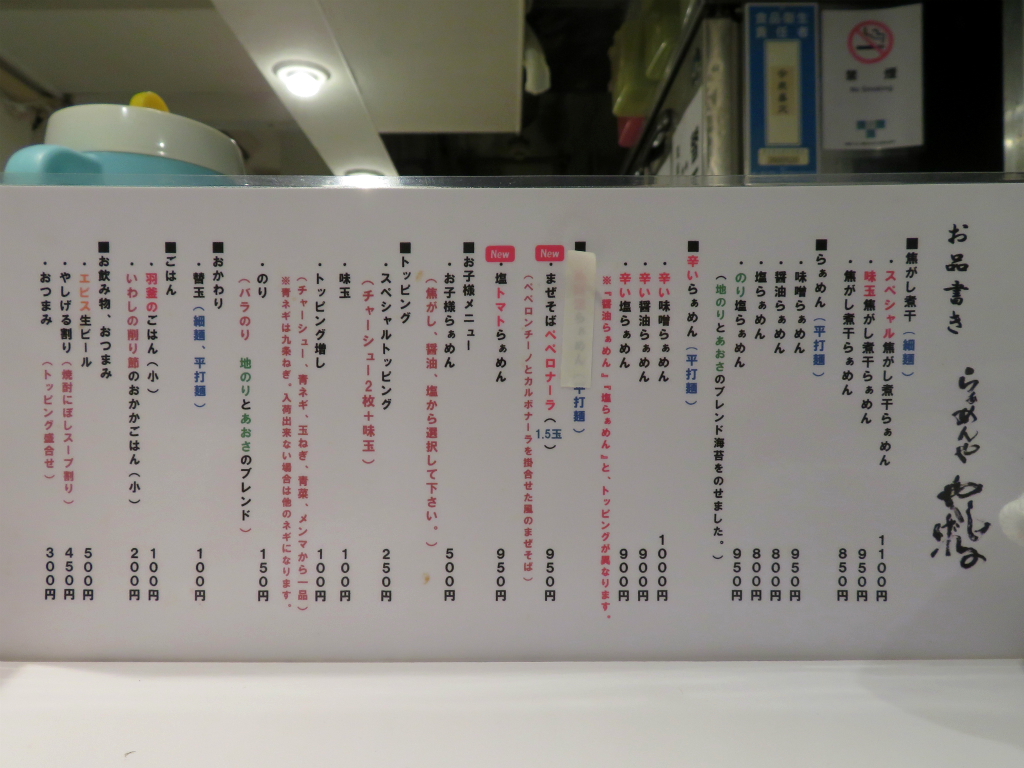 最寄は小田急経堂駅。創業2014年(平成26年)、焦がし免許皆伝者の店主今泉喜文氏による 「らぁめんや やしげる」。