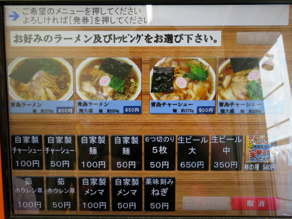 ■注文:青島ラーメン+自家製チャーシュー+茹ホウレン草(¥800+¥50+¥50)