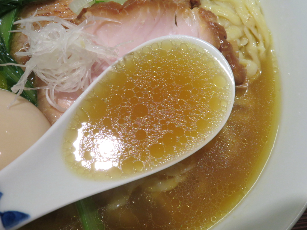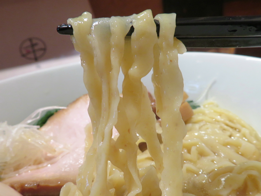 さて、「塩」。細麺と中太手もみ麺の自家製麺から後者を選択。おおう、こんなにローズがマリーしていたかしらと弾く電卓。