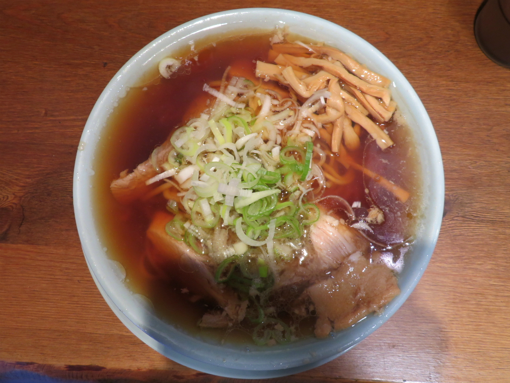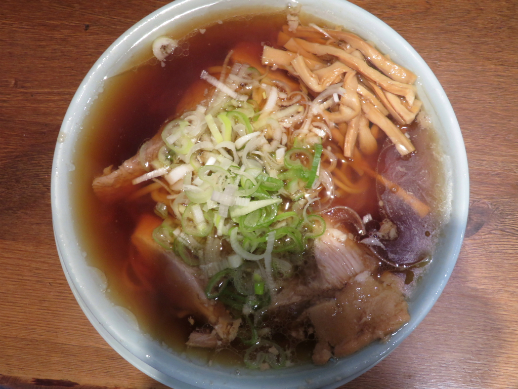 さて、「中華そば」。嵯峨谷跡地、鰻の寝床は手前に陣取り一杯。一口で虜となる系列特有のショパウマが 癖になるやつ。