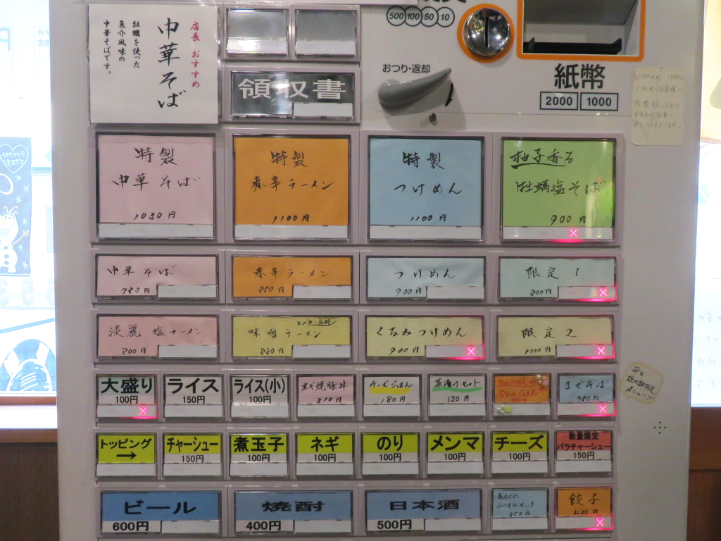 さて、「中華そば」。でも 大丈夫。券売機に朱で書かれた 店長おすすめの文字に倣うだけ、強く思えば願いは叶うんだね。