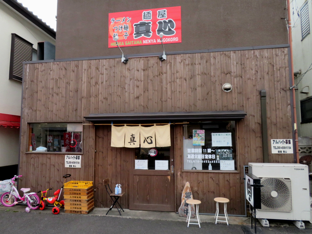最寄は川越線の武蔵高萩駅。創業2018年(平成30年)、店主日塔 涼氏が手掛ける新進気鋭の人気店。「麺屋 真心」。