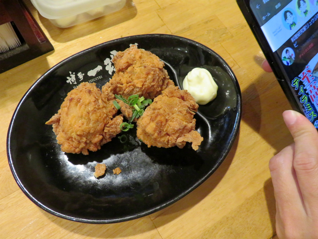 ■注文:豚骨ラーメン(¥690)、炒飯(¥550)、博多一口餃子(5個)(¥250)、塩麹から揚げ(3個)(¥290)、ほか