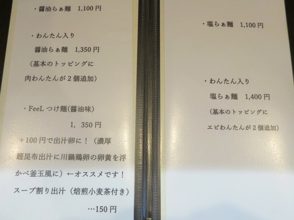 「わんたん入り 塩らぁ麺」からの「わんたん入り 醤油らぁ麺」からの「FeeLつけ麺(醤油味)」ってな具合にええ、本日にて四回目の訪問とか胸を張っておく君と僕。うん、これでも行ってるほうでしょって 二桁三桁の人がいて居場所がないですゼ。