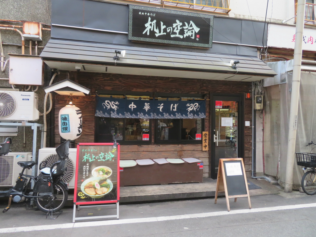 最寄は王子神谷駅。東十条駅へ抜ける東十条銀座商店街の中の人気店。創業2017年(平成29年)、「机上の空論」。