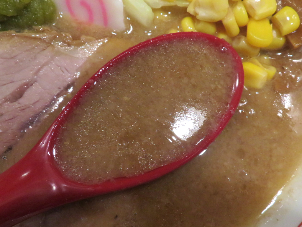 さて、「六等星の味噌らぁめん」。無料トッピングはニンニク、柚子胡椒で後者のみ。一口食べて 麺半を後悔、先に立たず。